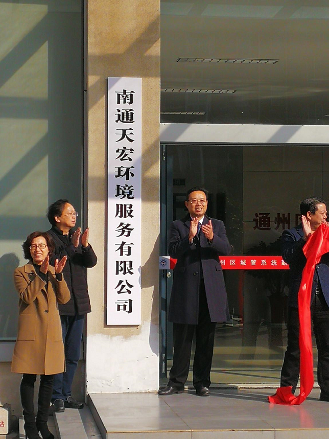 12月24日上午,通州區環衛作業市場化運營項目簽約暨南通天宏環境服務有限公司掛牌儀式在區城管局舉行。區城管局、國資辦、中國天楹、圓宏集團等相關部門領導應邀出席儀式。